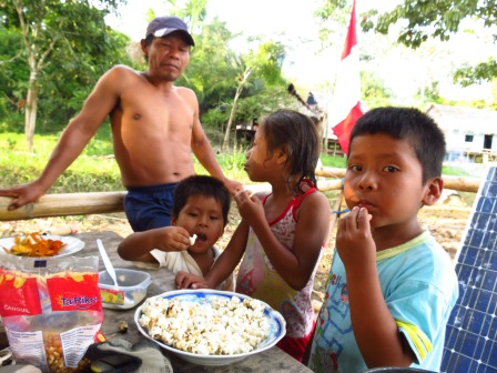 Serving popcorn for the kids, normally wins the friendship of the locals