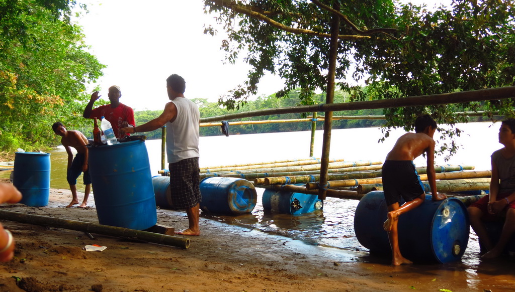 Installing the barrels under the main-frame and the raft is floating!