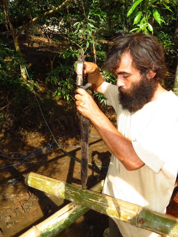 Peycho, constructing with a machete