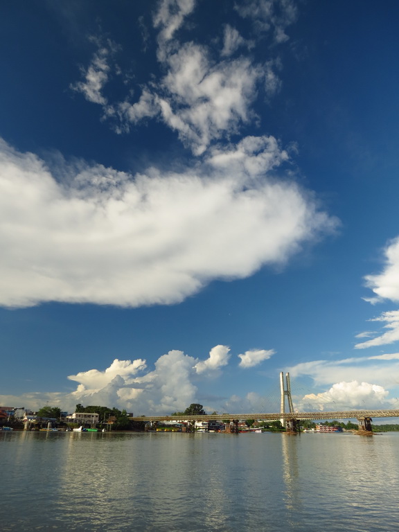 Reaching the Napo River on our raft after 2 hours, floating past Coca