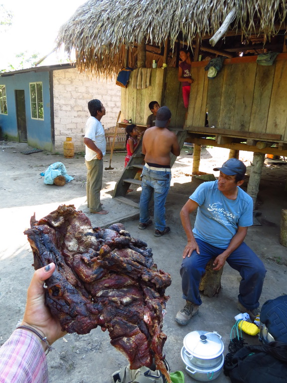 My Xmas expedition with Santana: I managed to buy this piece of cured meat from a jungle boar.