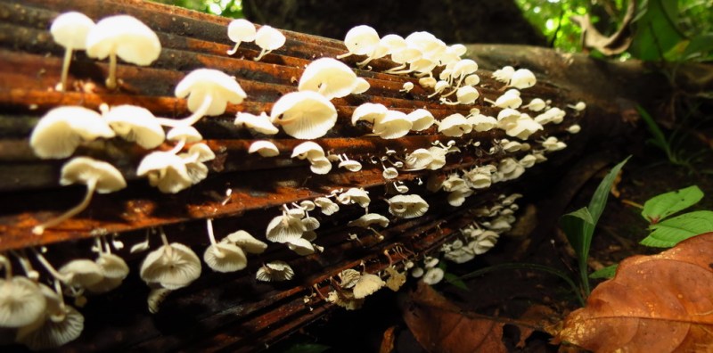 Tiny mushrooms on the sweet-smelling decaying jungle-floor