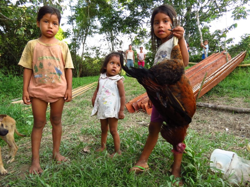 Local kids are showing us their dinner. Our new floor is drying in the background.