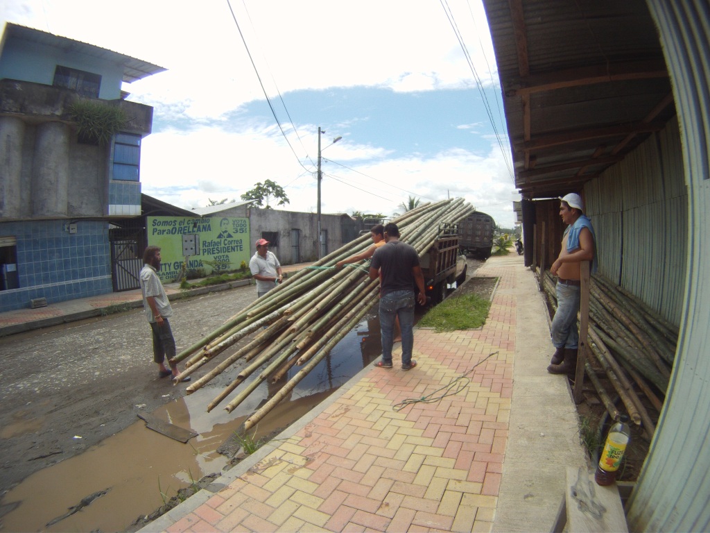 The first construction materials that we buy: 34 sticks of bamboo, approx 10m long.